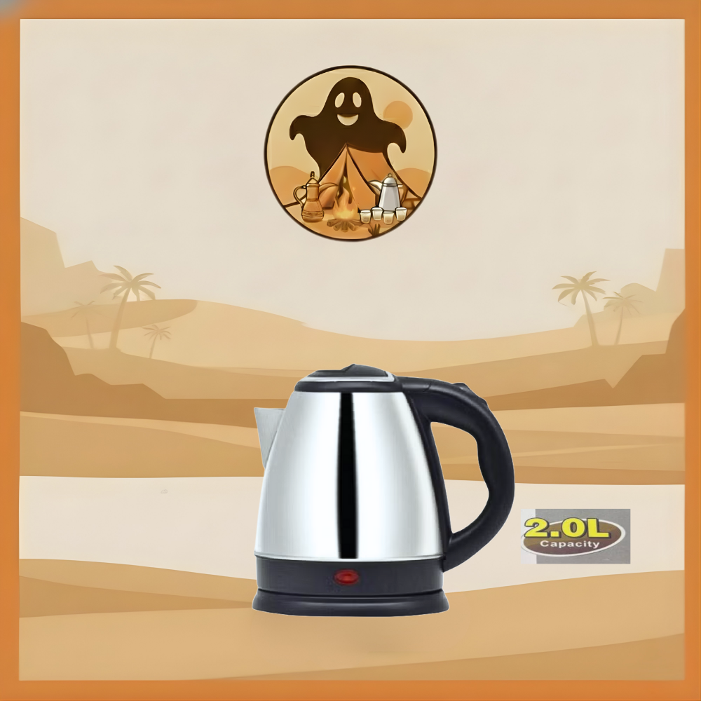 غلاية كهربائية كبيرة بسعة 2.0L تساعدك على تجهيز الشاي والقهوة والمشروبات الساخنة لعائلتك وضيوفك في وقت قياسي، بتصميم أنيق يناسب جلسات البيت والبر ويضيف لمسة عملية لأي مطبخ أو استراحة.